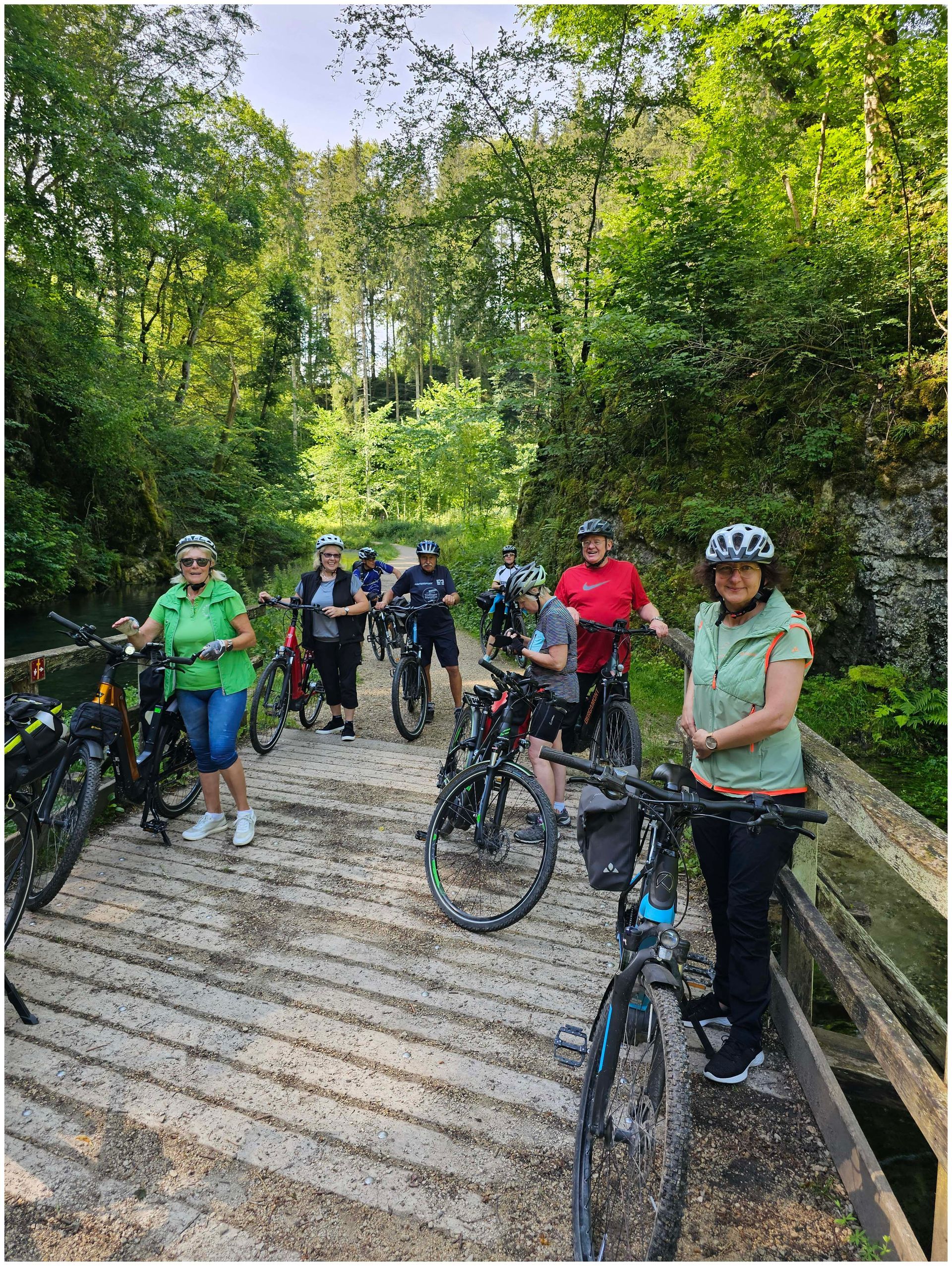 Aus bestimmten Gründen mussten wir den Tourstart nach Zwiefalten verlegen. Es ging nun vorbei am schönen Münster Richtung Gossenzugen und von dort ins idyllische Glastal. An der Hayinger Brücke nutzten wir die Gelegenheit für eine kurze Rast und für ein Gruppenfoto.