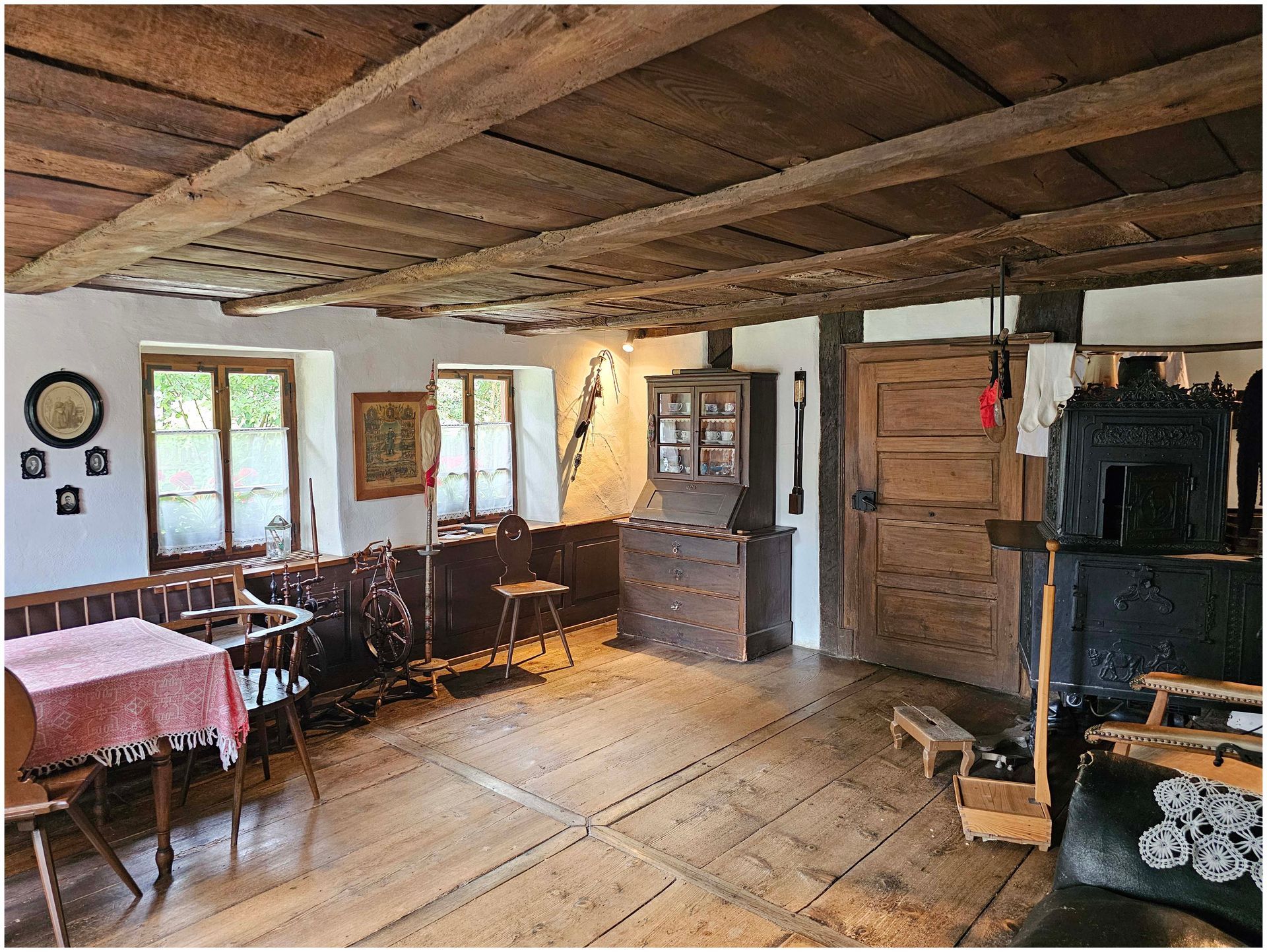 Hier besuchten wir das fantastische Bauernhausmuseum und erlebten “Dorfgeschichte“ hautnah. Zum 5,8 ha großen und gepflegten Museumskomplex gehören zwei Gebäude einer Althofstelle aus der Zeit um 1600 und von 1859, die das einstige bäuerliche Wohnen und Arbeiten auf der Hochfläche der Schwäbischen Alb dokumentieren. Gästeführerin, Frau Fröhlich, konnte uns mit ihrem fundierten Wissen und Anekdoten aus der damaligen Zeit das einfache und harte Alltagsleben lebendig machen und ließ auch ein Stück unserer Kindheit wieder aufleben.